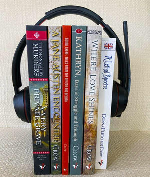 Crow's books now available in audiobook version include selections from her mystery, history and romance series and 2 short story collections beginning with "Going There," Tales from the Riviera and Beyond 7 short stories of various genres set within the memoir of a memorable travel experience.