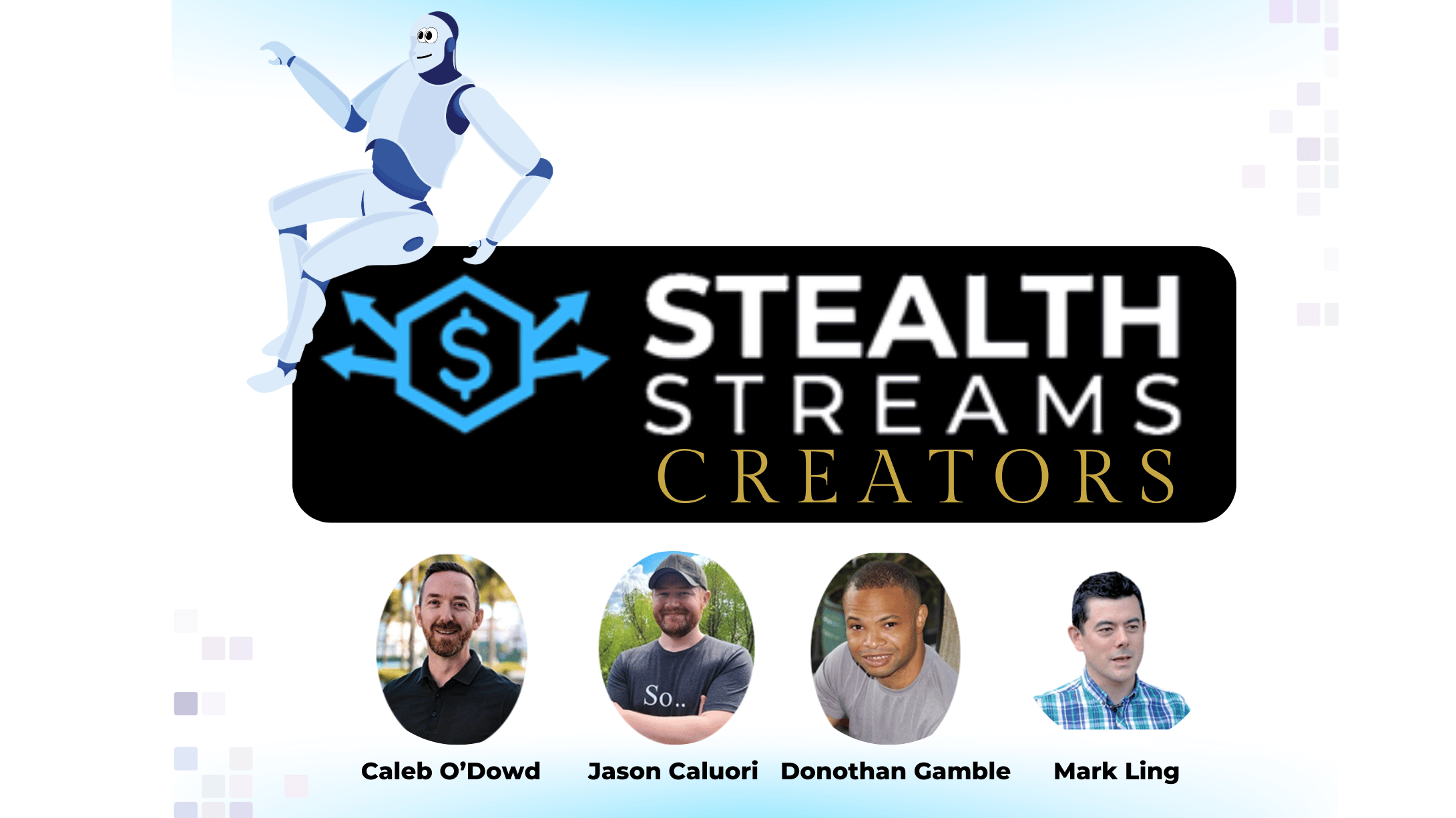 An eight-week live coaching program, Stealth Streams, combines AI software to assist users in creating authoritative niche websites. The system, which Caleb O'Dowd, Mark Ling, Jason Caluori, and Donothan Gamble developed, uses AI tools like "StealthBrain" to automate content creation and website building. The program also includes D.F.Y websites, keyword research tools, and ongoing support.