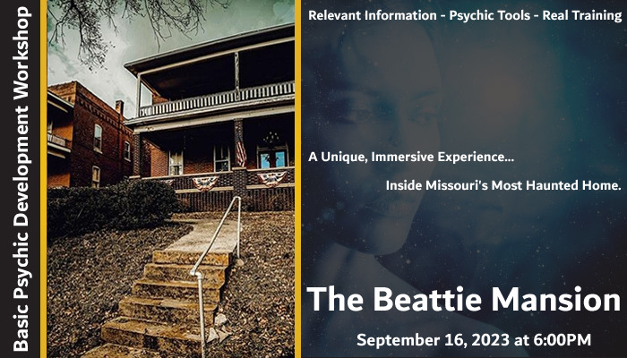 No matter if you are looking for a starting point on your spiritual journey, need information on how to expand your intuitive gifts, or wonder if you possess them at all - This workshop is for you. And we'll be doing it from inside Missouri's most haunted home, the infamous Beattie Mansion! Beattie Mansion was built in 1854 and has played host to many uses, such as familial living quarters, a shelter for the homeless and distressed, as well as a home for the elderly.