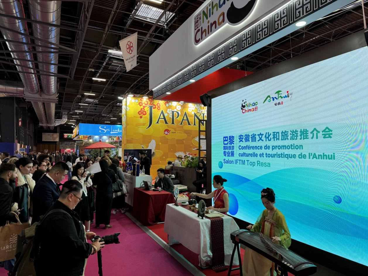 From September 17 to 19, 2024, the International Tourism Industry Expo in Paris opened at the Versailles Gate Exhibition Center in France. Grand Huangshan, a world-class leisure, vacation, and wellness tourism destination, made a stunning debut, attracting travel merchants and visitors from various countries to the Anhui booth for inquiries and discussions. Wang Jing, Deputy Director of the Anhui Provincial Department of Culture and Tourism, attended the opening ceremony of the China Pavilion and delivered a speech. Ambassador Lu Shaye and Minister Chen Li from the Chinese Embassy in France visited the Anhui booth, offering high praise. The unique Anhui cultural and tourism promotion captivated travel merchants and visitors alike, while the promotional video "Encounter Grand Huangshan" showcased the region's unique charm. Classic performances of Huangmei Opera’s "The Cowherd and the Weaver Girl" and a tea ceremony demonstration won widespread acclaim. Key cultural and tourism representatives from Lu’an and Shou County also delivered presentations at the event.